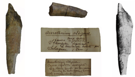 Ce gisement totalement inédit est révélé par une étiquette de la collection Caraven-Cachin du musée d’Albi, a fourni « un radius et un cubitus d’Anthacotherium magnum. Don de Hippolyte Bonnefous, le 21 juin 1902 ».
